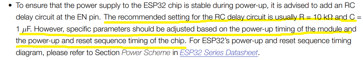 만약, VDD3.3이 안정화 되기전 EN핀이 먼저 올라가거나 혹은 VDD3.3이 올라가다가 내려가는(불안정) 동작을 할 경우 부팅에 실패하게 되고, 최악의 경우 부팅을 계속 시도하는 무한 Loop에 빠질수도 있습니다.