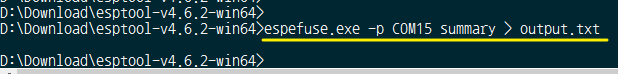 espefuse.exe -p COM15 summary > output.txt