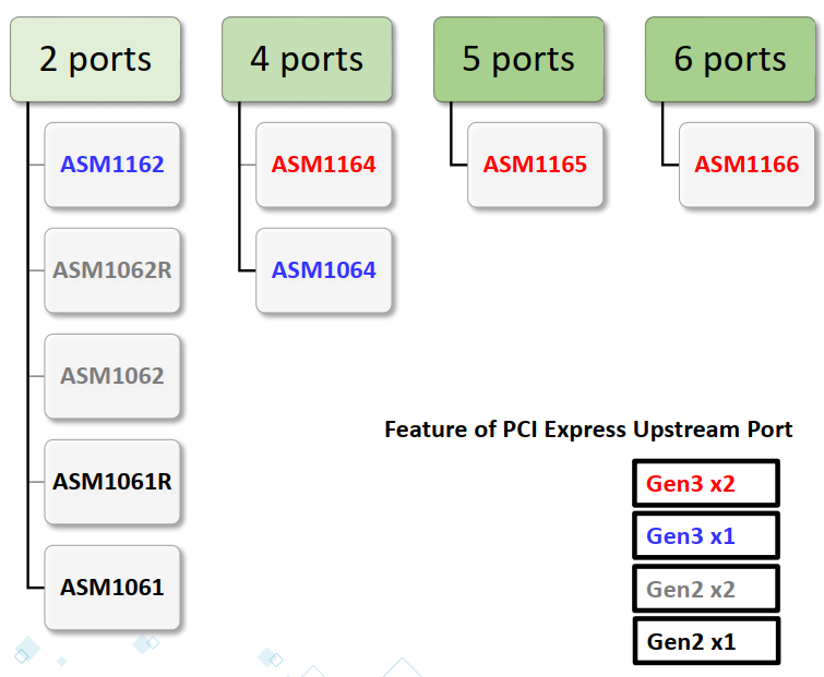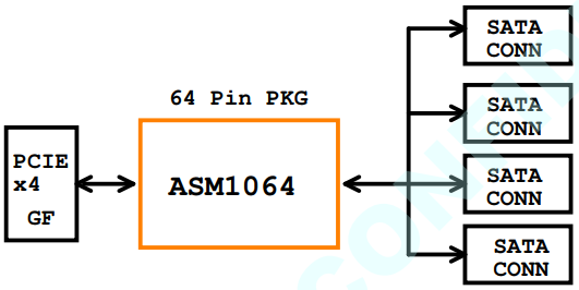 예로, PCIe Gen3 x 1lane에 연결하여 SATA 4포트를 만들때는 ASM1064를 사용하면 됩니다.