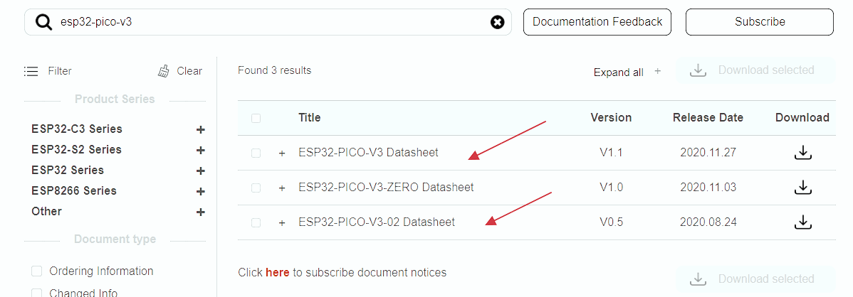 First of all, you can download datasheet from ESPRESSIF.COM that is the official Espressif website.