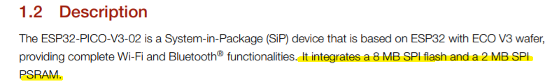 ESP32-PICO-V3-02 has internal 8MB SPI flash memory that is 3.3V operating.