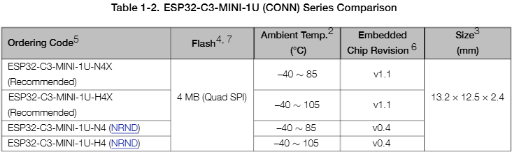 | ESP32-C3-MINI-1-N4/N4X, H4/H4X 차이 (0) | 2026.01.05 |