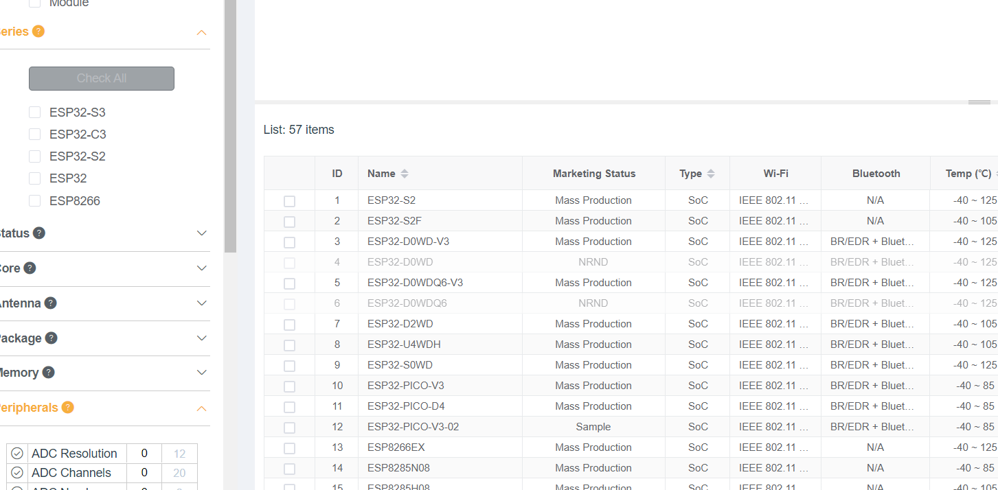 Espressif사는 아래 홈페이지에서 제품 선택을 위한 가이드를 제공합니다.
