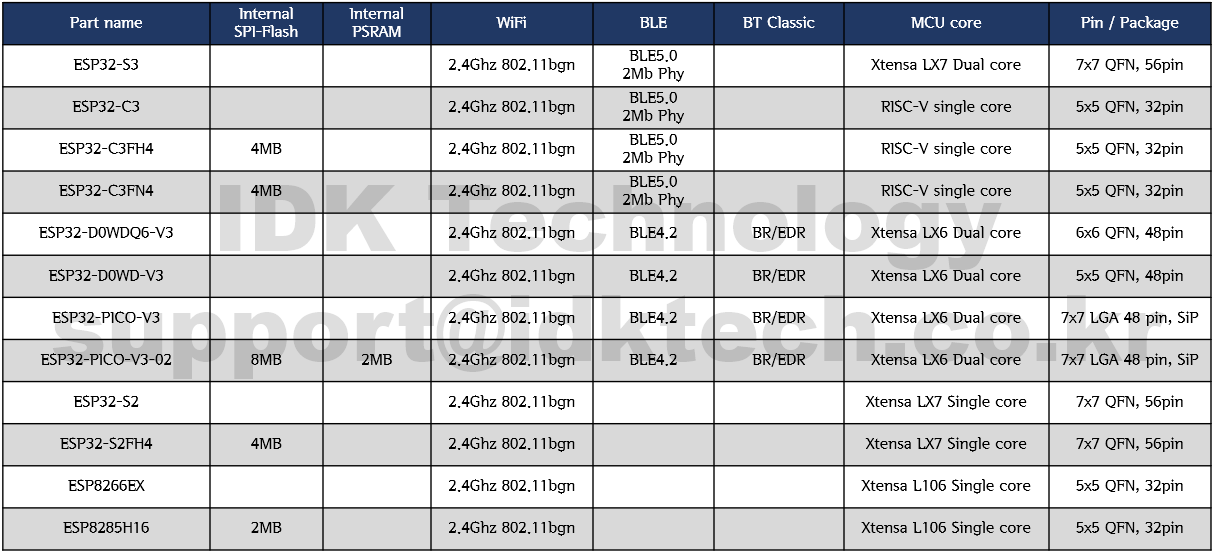 만약, WiFi만 필요하면, ESP32-S2, ESP8266EX이 WiFi만 지원하는 제품입니다.