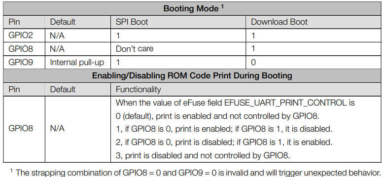 GPIO8, GPIO9, GPIO10이 Boot strap 핀입니다.
