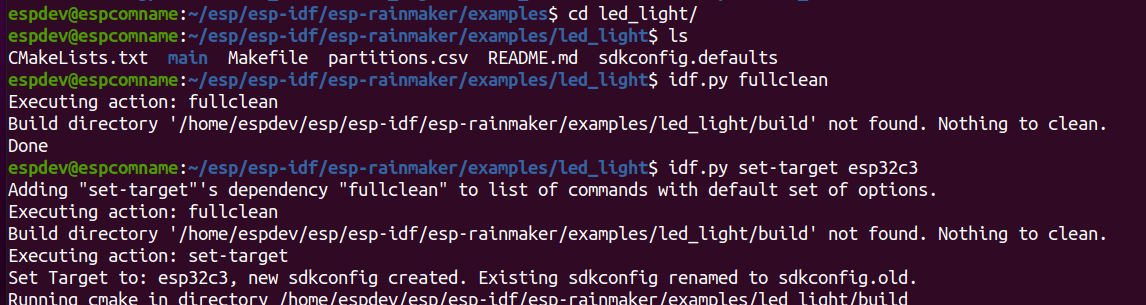 빌드전에 반드시 타겟을 ESP32-C3로 해야 한다. (idf.py set-target esp32c3)
