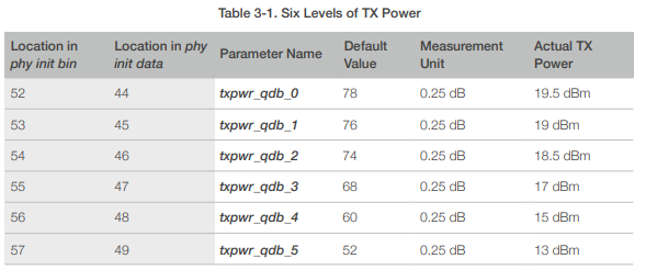 1) RF Target power는 기본 SDK값을 사용하는 것을 권하여 드리며, 변경하는 것은 추천하지 않습니다.